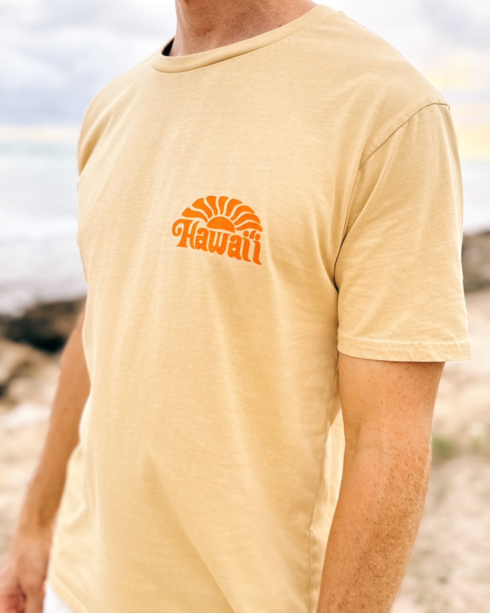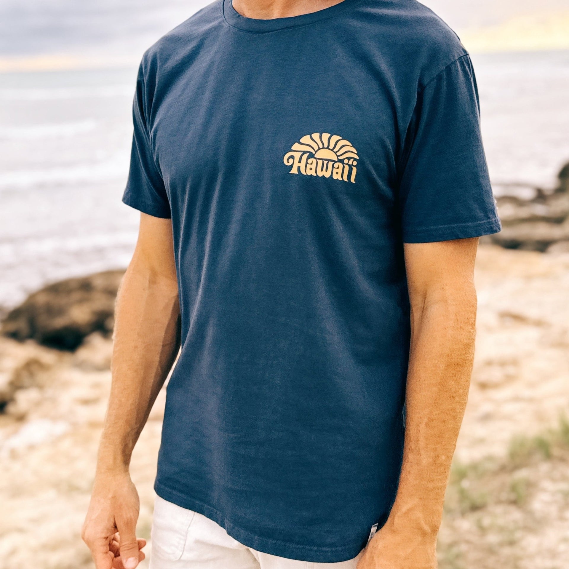 Our Hawai‘i Tee celebrates the feeling of the warm sunshine of the Hawaiian Islands with delightfully vintage inspired front art. Printed on comfy 100% Cotton.