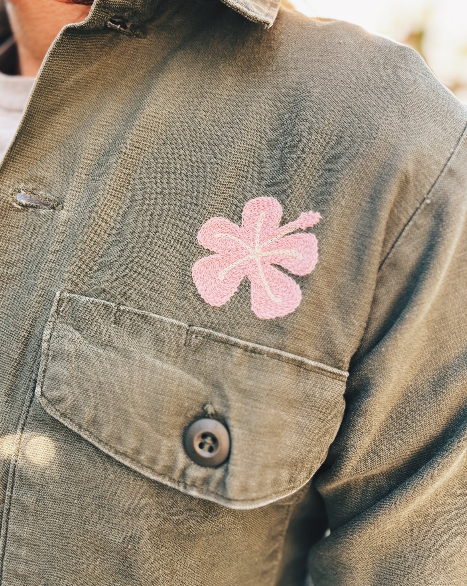 There's nothing quite like the hum of a nearly 100 year old machine laying down custom stitching on vintage fabric. The second collaboration with Nick Kuchar and The Honolulu Social Club, these one of a kind originals include chain stitched renditions of Nick's art on vintage military jackets. Designed and made in Hawaii.