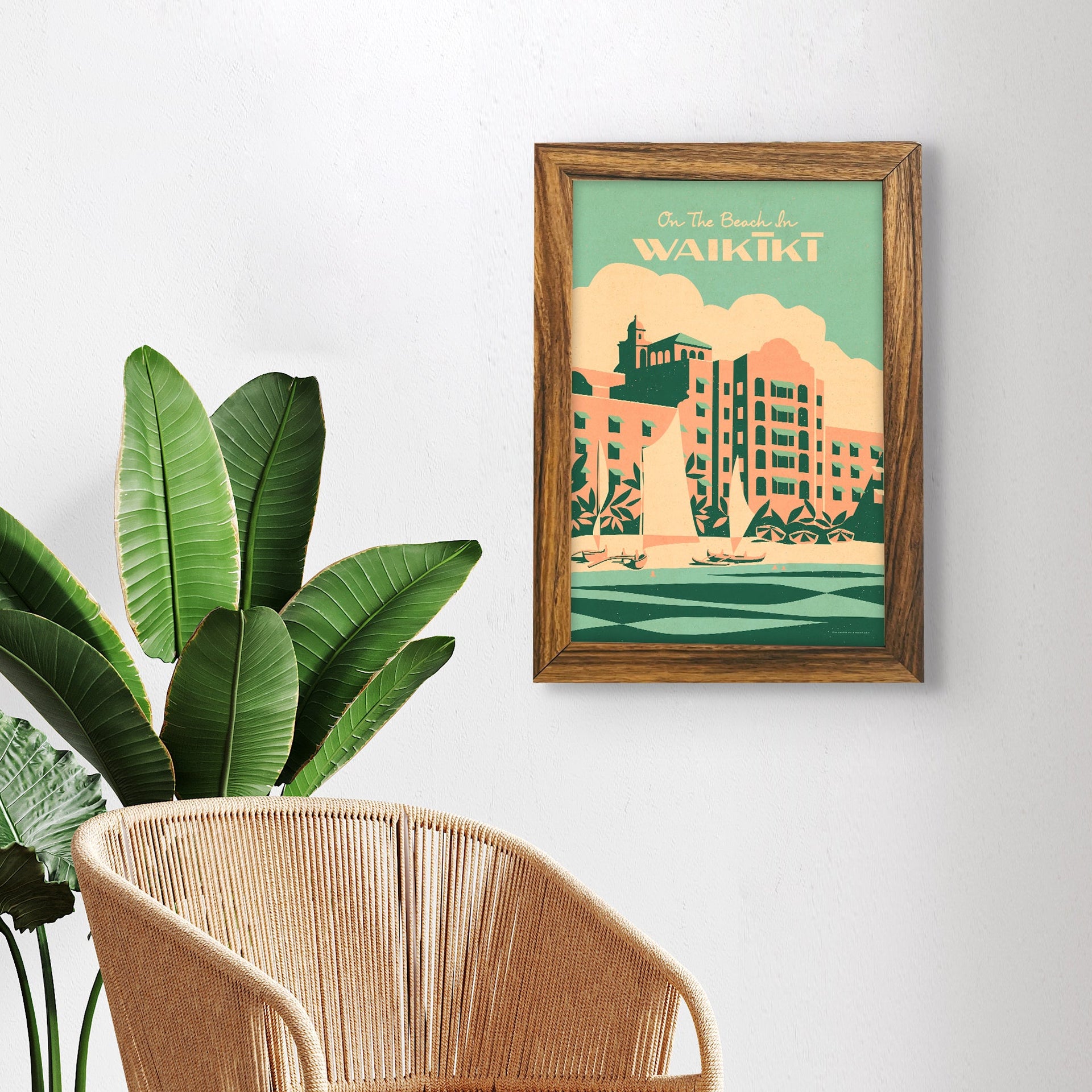 On The Beach In Waikiki - 12x18" - Hawaii Travel Print