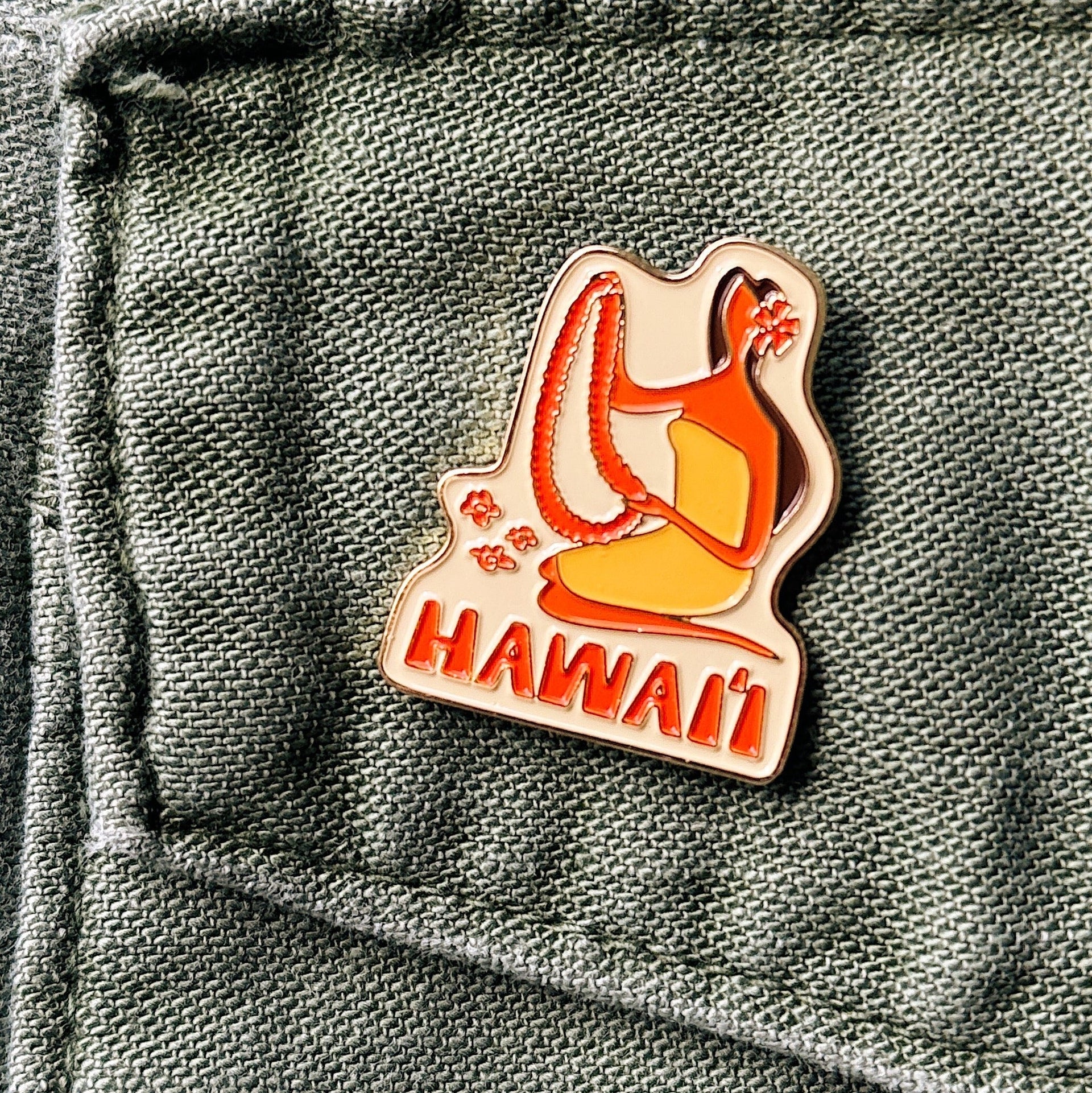 Crafted with soft enamel and a polished gold finish, it's perfect for your jacket, backpack, or pin board. A subtle statement of island love, creativity, and wahine strength. Wear a piece of paradise one pin at a time.