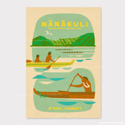 First created for the Father’s Day Regatta hosted by the Leeward Kai Canoe Club, this Nānākuli print honors the rich paddling traditions of O‘ahu’s west side. From an ocean vantage point, it captures the area’s stunning turquoise waters and the breathtaking view back into the valley.
