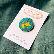 Made with hard enamel and a polished gold finish, it’s the perfect size for your jacket, bag, or pin collection. A small piece of our shop to take with you wherever you go.