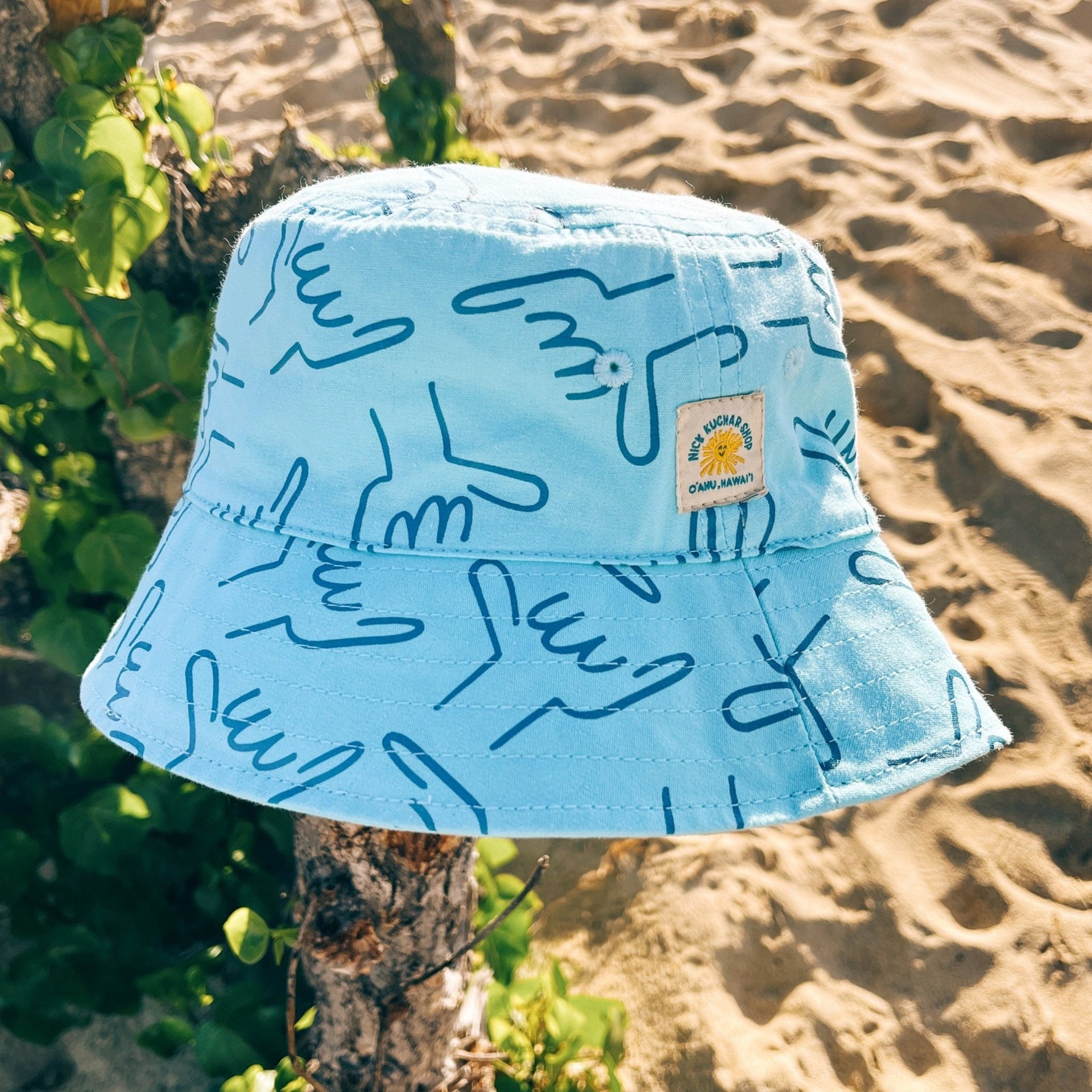 Show offer your laid back style and your love for shakas with our hang loose reversible bucket hat for kids! Wear it understated with a small embroidered graphic or flip it the other way for the all over shaka print.